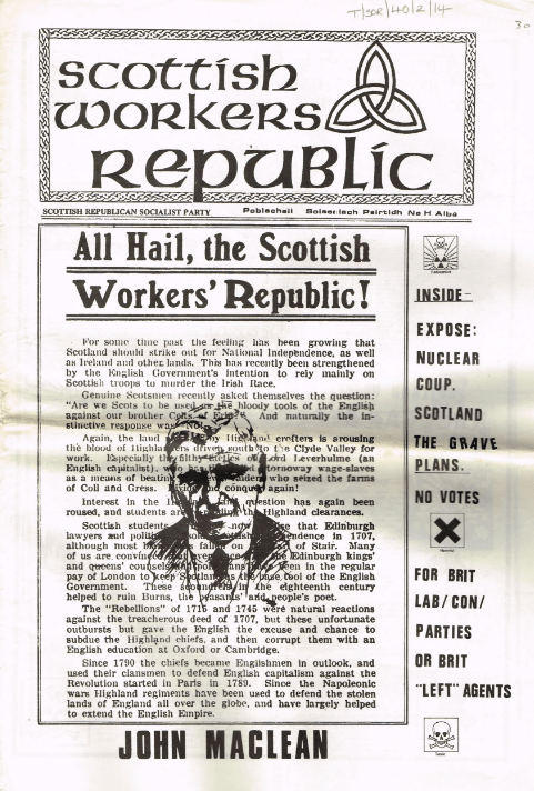Tùs na deilbh: ‘Scottish Workers Republic’ (mu 1985) – an seo.