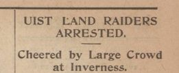 Summary: #OTD 9 August 1921, the Balranald raiders arrived in Inverness to serve their time in prison. They had been sentenced in Lochmaddy in the spring to 60 days in prison, without the option of paying a fine, for raiding and occupying the Balranald estate in North Uist. Twelve men had originally carried out the raid in December 1920, marching with a piper at their head and then digging the ground to plant potatoes. Only eight men had to serve time in prison. In the end they had generated enough publicity and support they were released after only 16 days. The Board of Agriculture bought out the estate and the men all got the land they had raided.